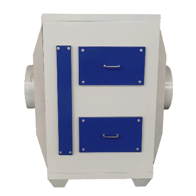 主要部件包括: 活性炭箱箱體、初效過濾器以及優質蜂窩活性炭 箱體:1.0mm厚一級冷軋鋼板,表面經酸洗、磷化,再經環氧樹脂粉末靜電噴涂 處理,具有一定耐酸堿、耐腐蝕; 初效過濾器:可處理廢氣中顆粒較大的雜質,延長蜂窩活性炭的使用壽命 蜂窩活性炭:碘值500,比表面積大,通孔阻力小,高吸附容量,使用壽命長